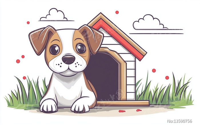 可爱小狗在家门口玩耍