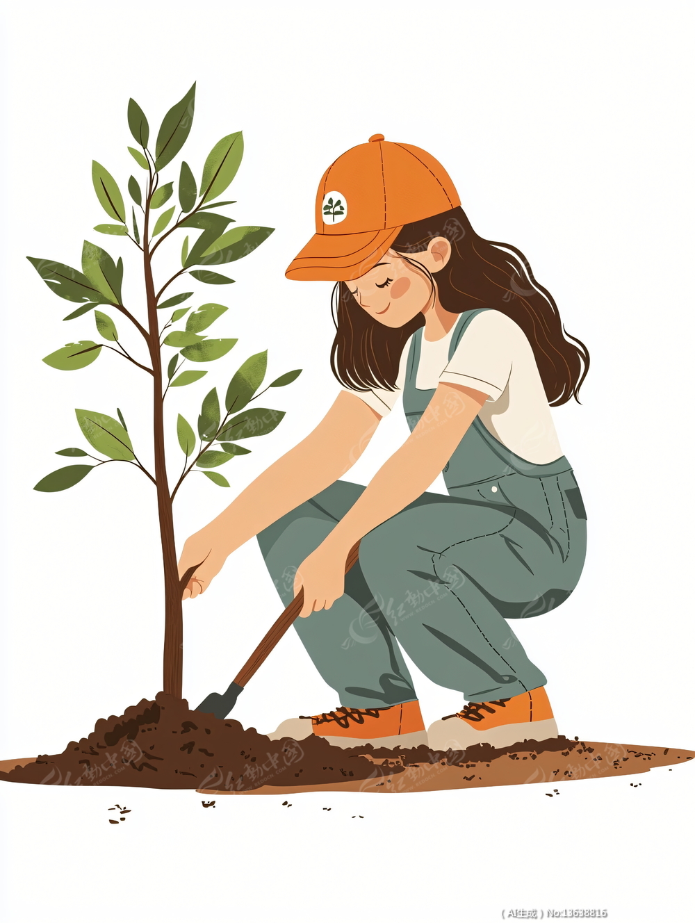 蹲着在种树的女生