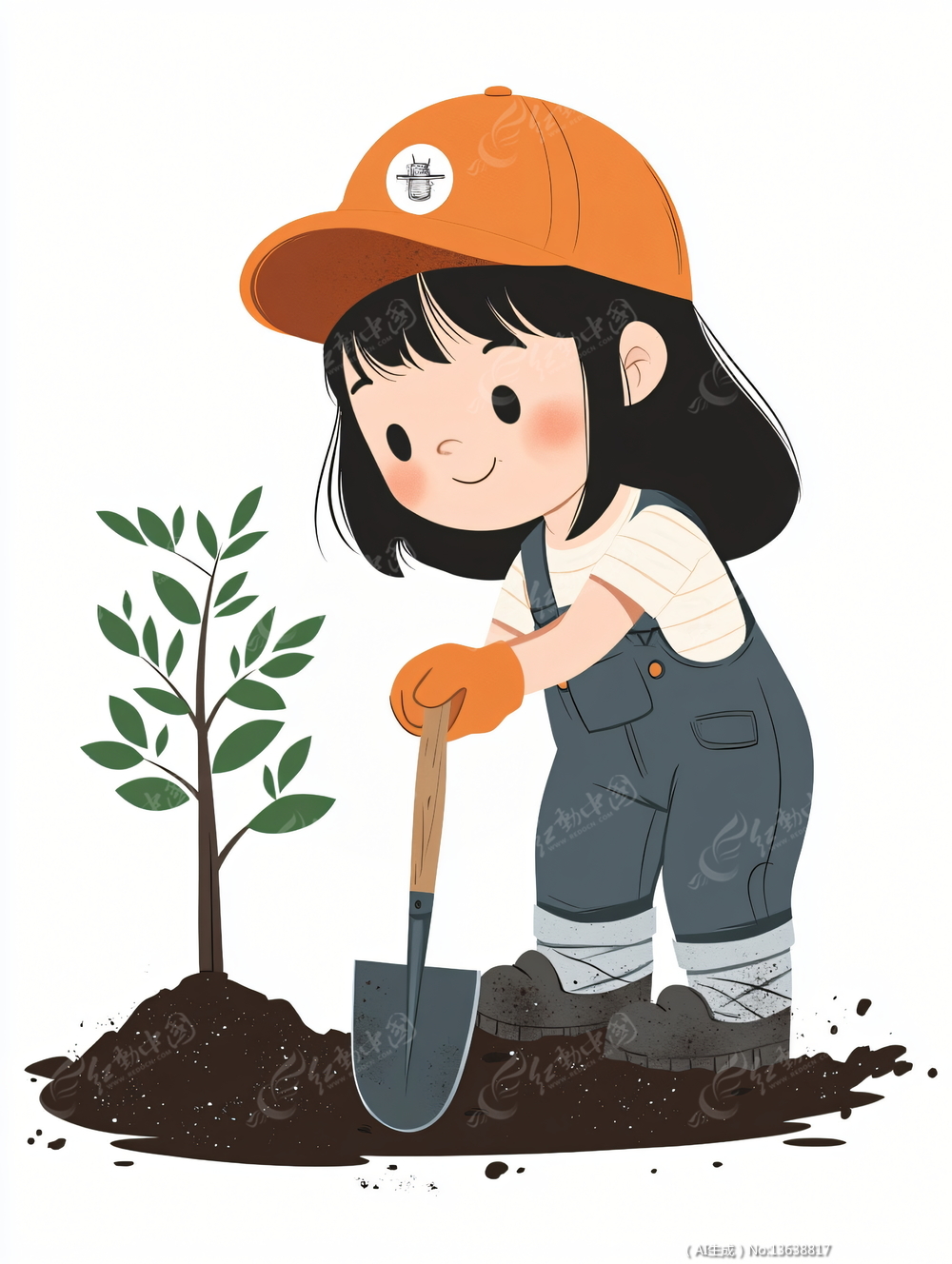 拿着铁锹在种树的女生