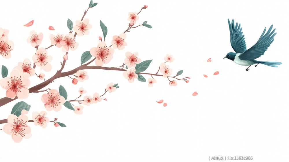 美丽的樱花小鸟图