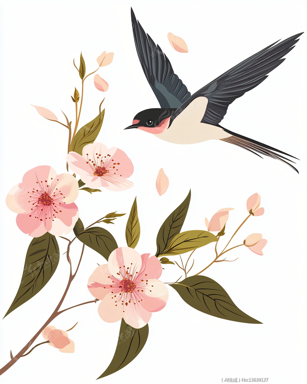 一只小鸟在花朵上