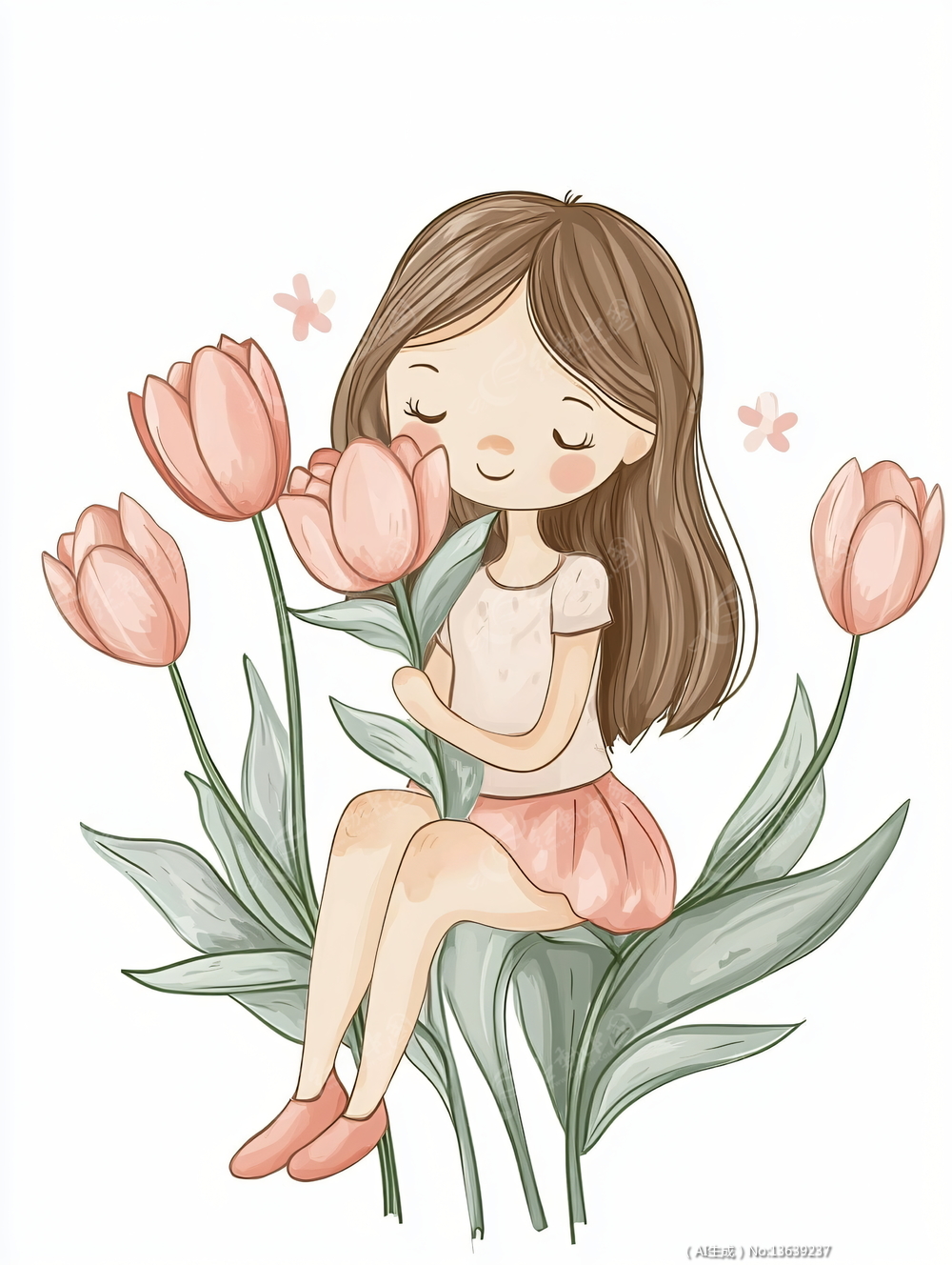 少女靠在花朵上