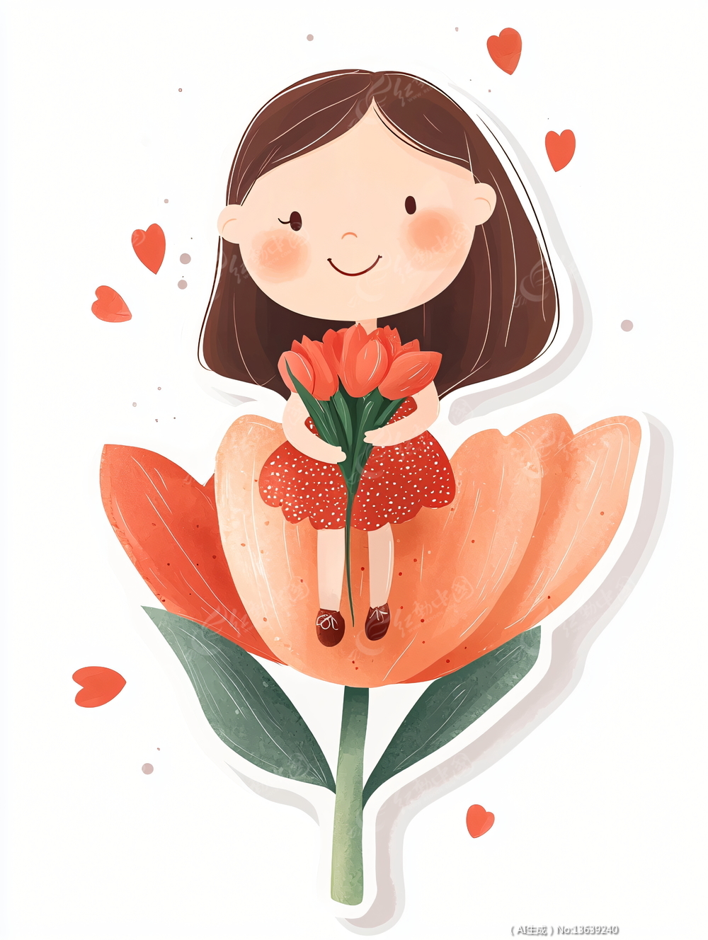 少女手拿着红色的花朵