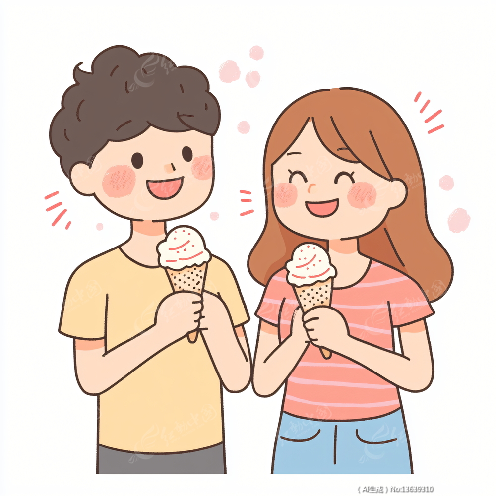 情侣拿着冰淇淋