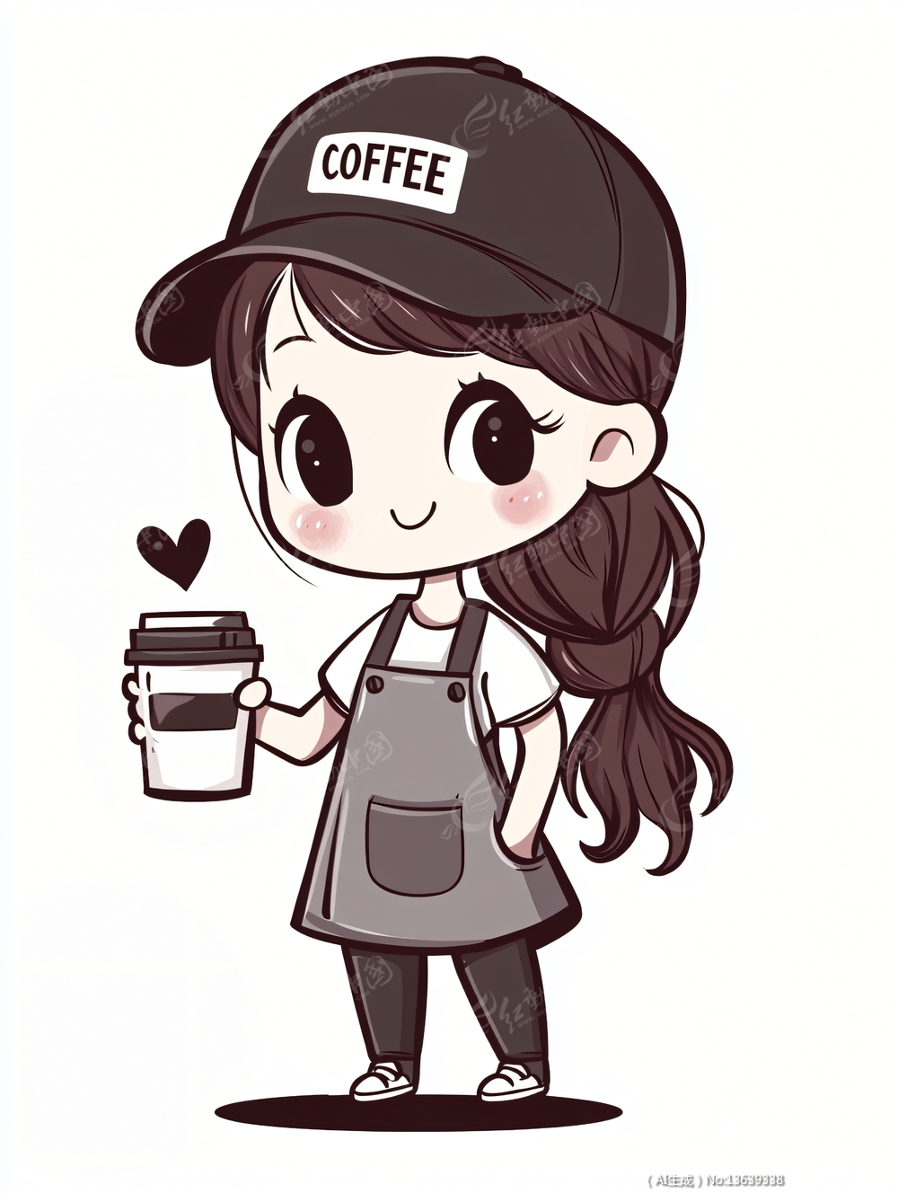 穿着工作服的女孩拿着咖啡