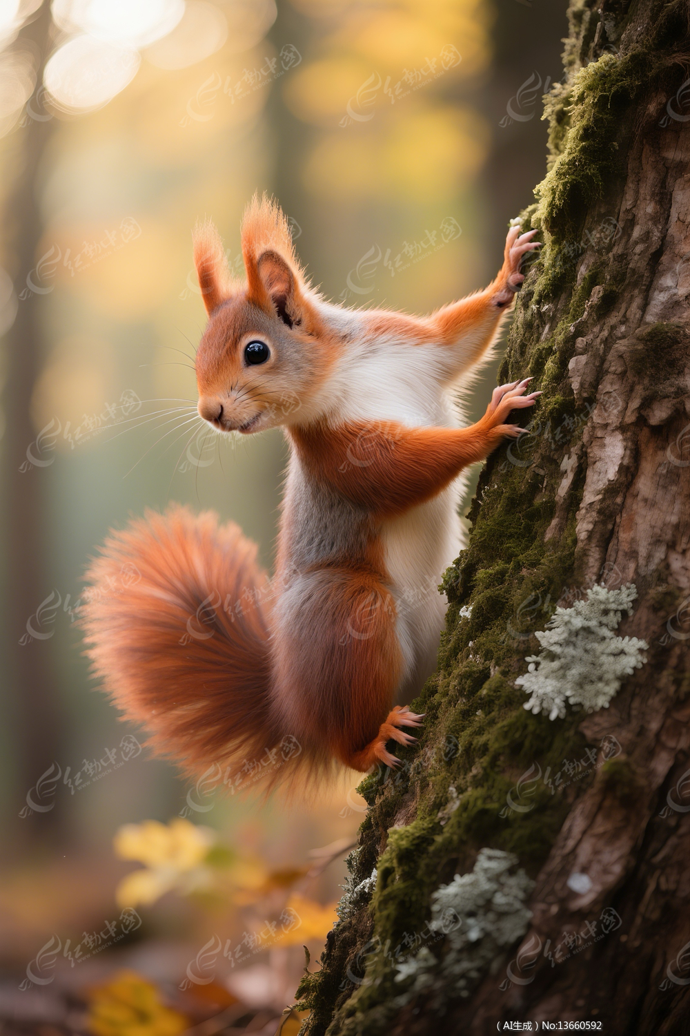 正在爬树的小松鼠