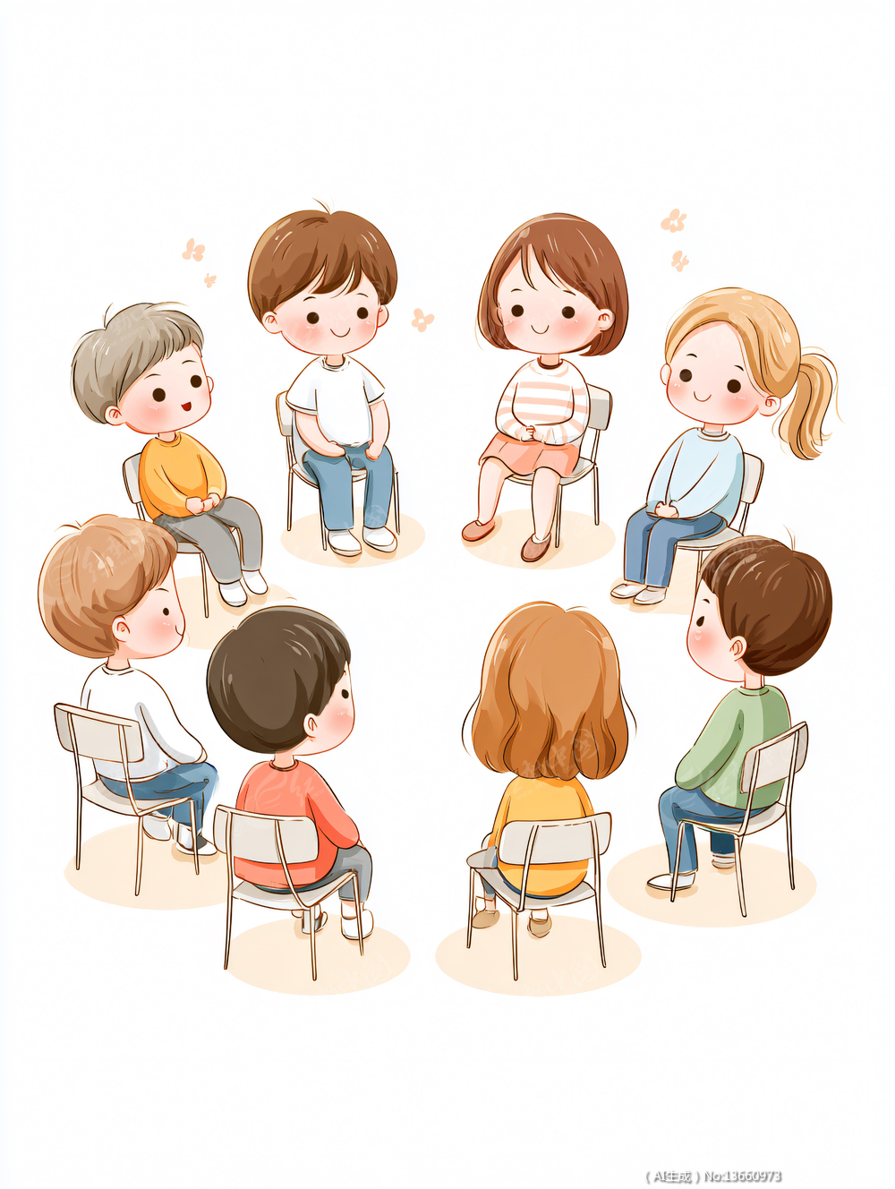 小学生围坐在一起开讨论会开学季卡通插画