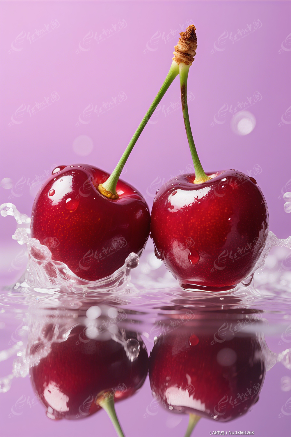 溅起水花的一对樱桃