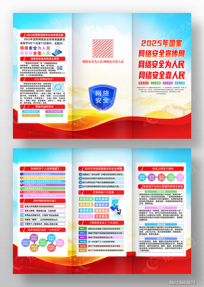 党建风2025年国家网络安全宣传周三折页图片下载_红动中国