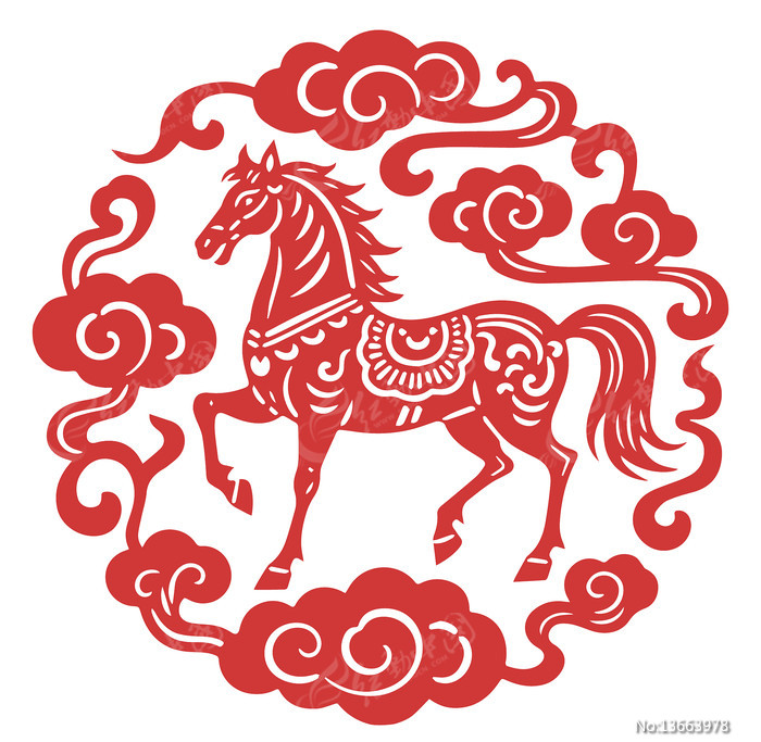 剪纸风骏马祥云图案矢量元素图片下载_红动中国