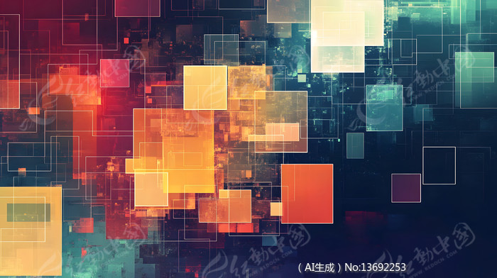 橘红色和绿色的方形色块组成抽象背景图片