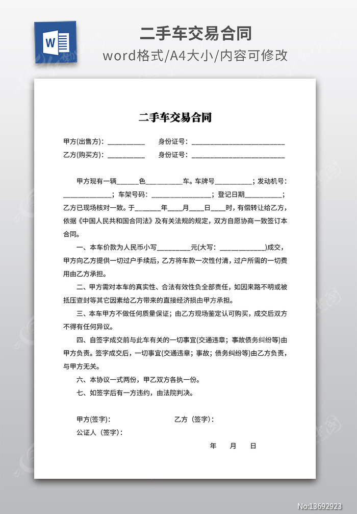 二手车交易合同下载_红动中国