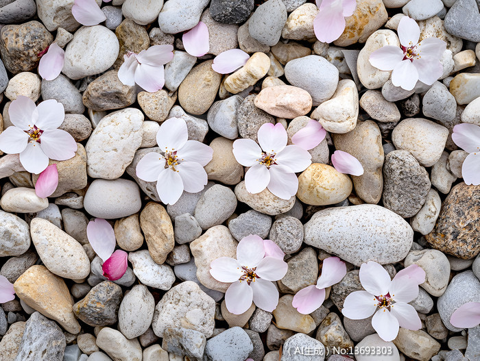 粉色樱花花瓣掉落在鹅卵石上花卉图片