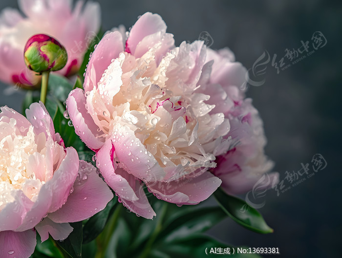 特写粉色牡丹花花丛