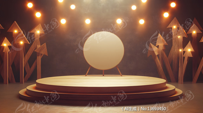 抽象创意灯泡和向上箭头棕色电商展示舞台