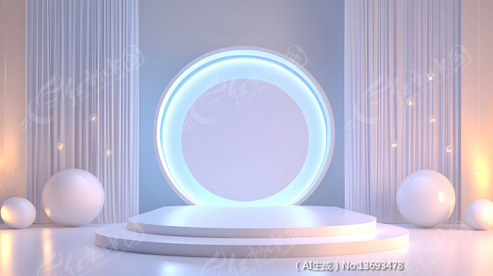 浅蓝色光圈紫色氛围电商展示舞台背景图