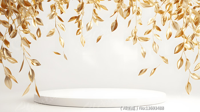 金黄色树叶垂挂围绕电商展示舞台背景图