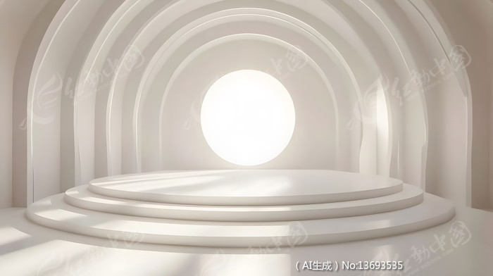 极简白色半圆形拱门阳光照耀电商展示舞台