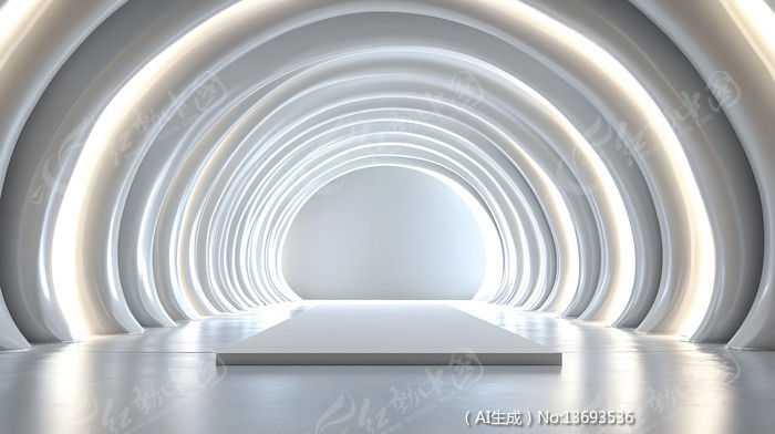 白灰色光圈半圆形拱门极简电商展示舞台