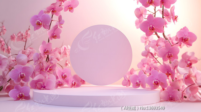 粉色蝴蝶兰花围绕电商展示舞台背景图