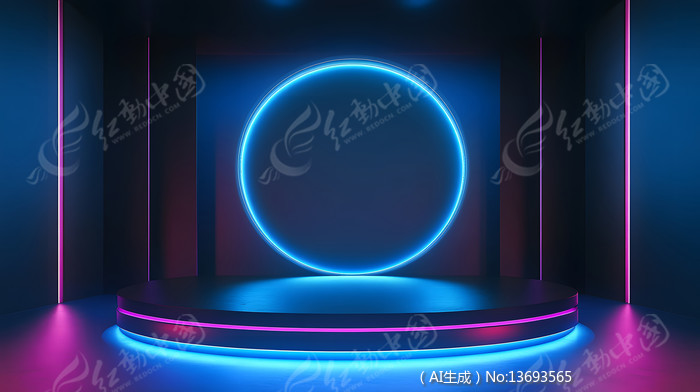 蓝紫色发光光圈圆形几何极简电商展示舞台