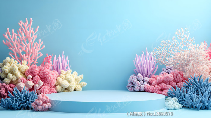 蓝色珊瑚礁围绕电商展示舞台背景图