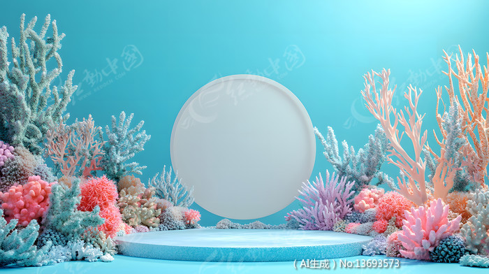 一堆珊瑚礁围绕圆形平台电商展示舞台背景图