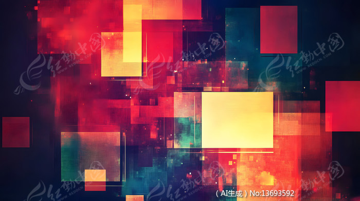 蓝红色方形几何色块层层叠叠抽象背景图片