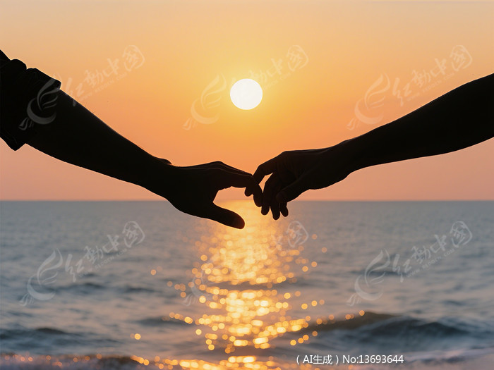 情侣牵手主题的剪影