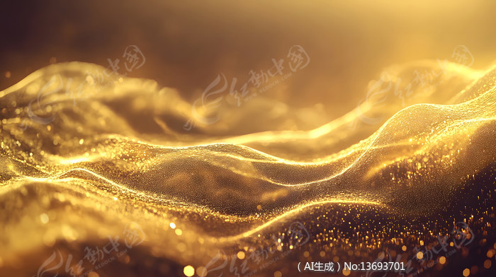 梦幻金黄色闪光光点波浪曲线流体抽象背景