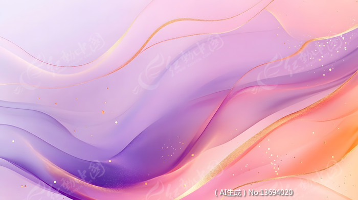 梦幻唯美紫色橙色飘逸波浪曲线抽象背景图片