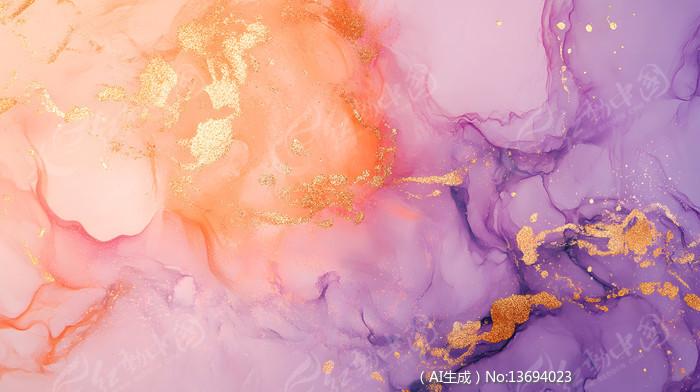 梦幻橙色紫色水墨感飘逸唯美抽象背景图片