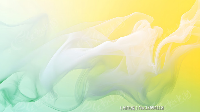 白绿色渐变云烟烟雾漂浮在黄绿色背景