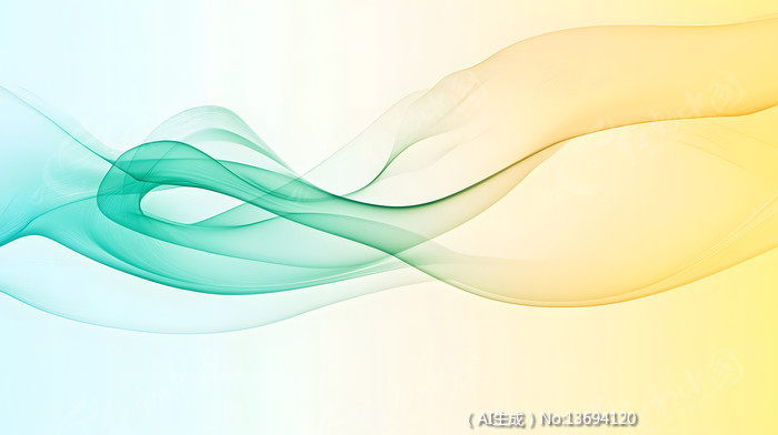 黄绿色飘逸云烟烟雾波浪曲线艺术感清新背景