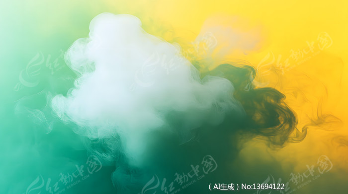 飘逸流体白色云烟烟雾悬浮在黄绿色背景