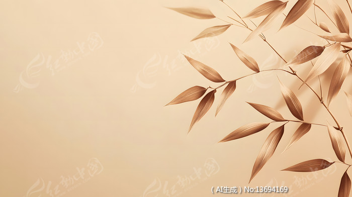 手绘艺术感复古极简竹叶树叶植物背景