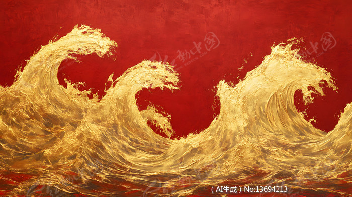 金黄色海浪浪花红色艺术感背景