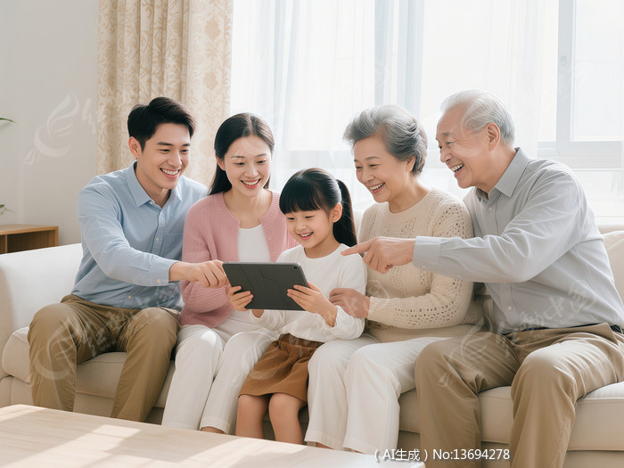 全家一起看平板电脑