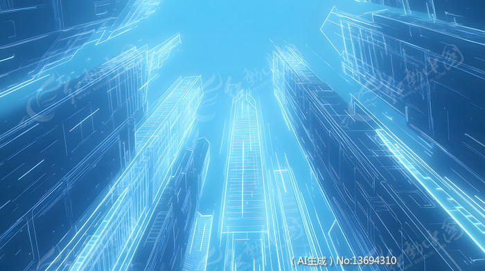 仰视城市写字楼建筑群商业大厦蓝色渐变背景