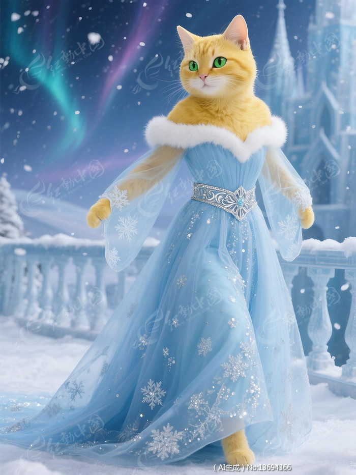 身穿蓝裙的橘猫