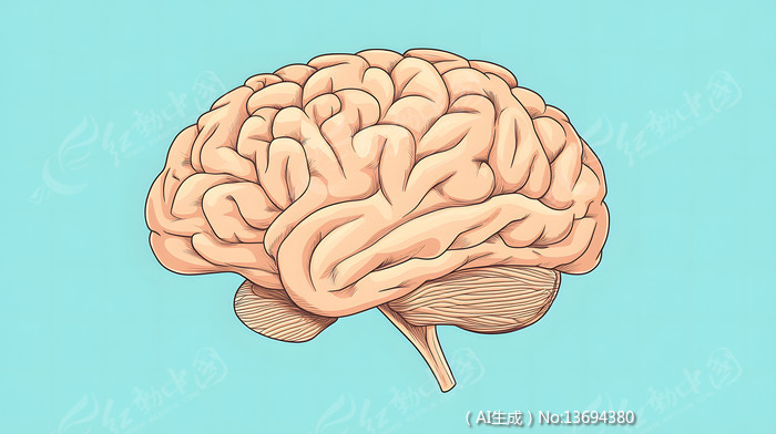 手绘卡通一个大脑脑部脑结构模型蓝色背景