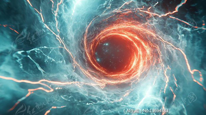 旋转炸裂红色蓝色黑洞宇宙太空背景