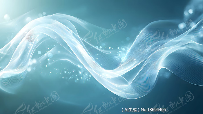 白色闪光光斑飘逸波浪曲线蓝色抽象背景图片
