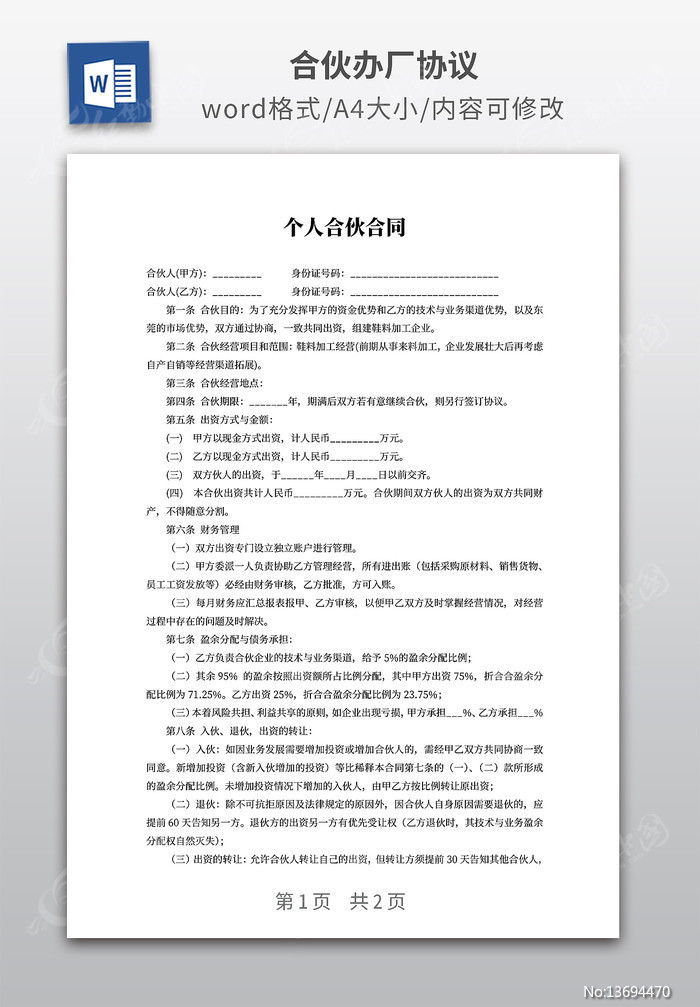 合伙办厂协议下载_红动中国