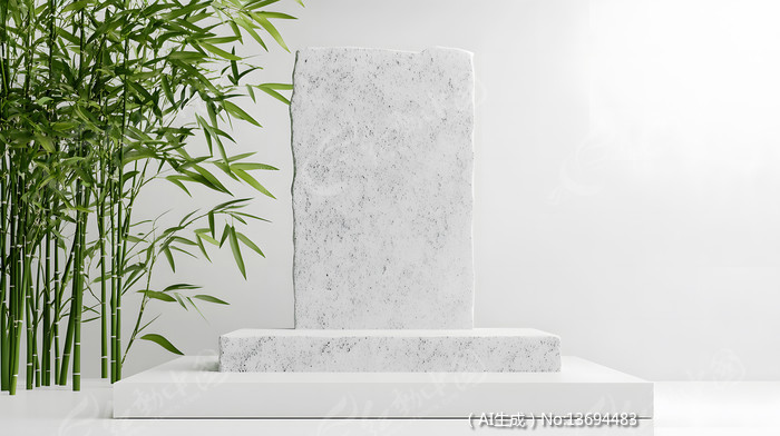 绿色竹子在白色大理石平台旁电商展示舞台