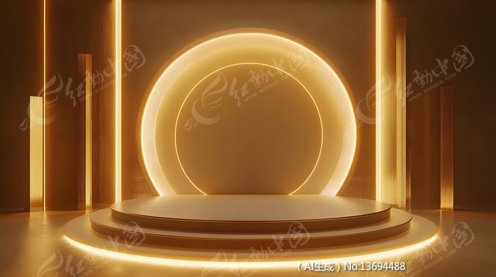 黄色发光光圈线条几何圆形简约电商展示舞台