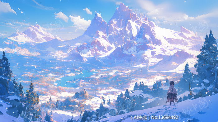 手绘冰川雪地白雪覆盖冬天卡通插画