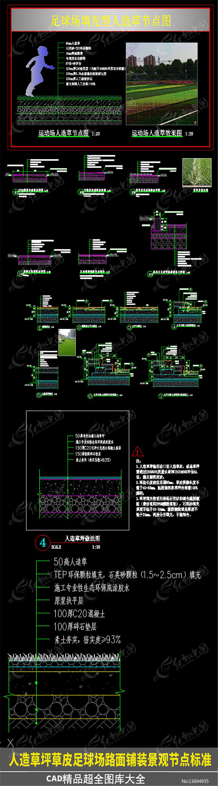 人造草坪草皮足球场路面现代铺装节点标准图片下载_红动中国