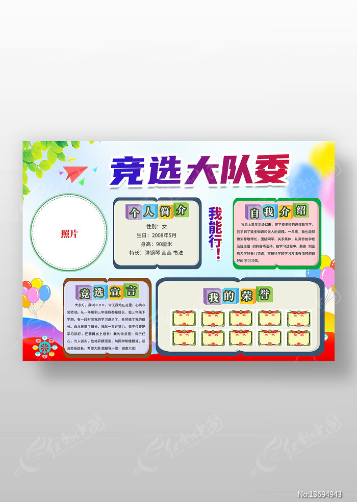 小学生大队委竞选小报自我介绍手抄报下载_红动中国