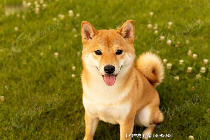 草地上可爱的微笑柴犬
